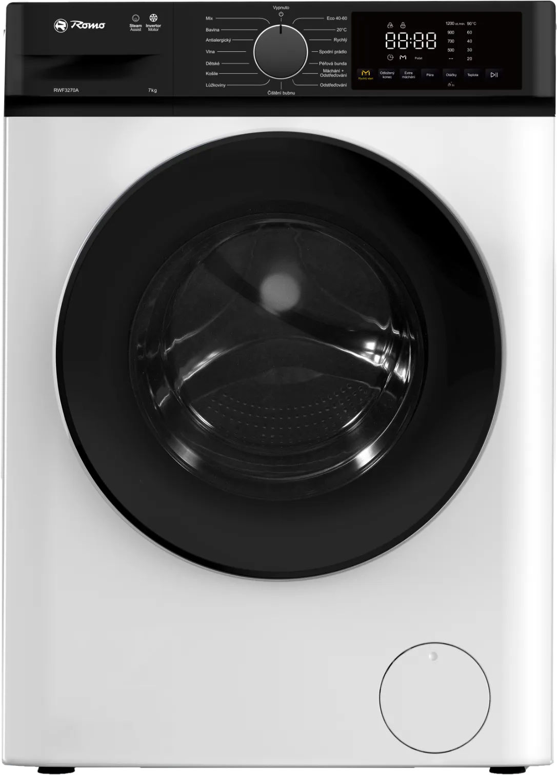 Tato předem plněná pračka značky Romo je navržena pro každodenní spolehlivé praní s důrazem na úspornost, jednoduché ovládání a moderní funkce. Díky kapacitě až 7 kg prádla je vhodná pro běžné domácnosti a nabízí vyvážený poměr mezi kompaktními rozměry a dostatečným objemem bubnu.